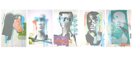 5 x acrylic, painted & screenprinted, glow-in-the-dark paint on canvas. Video performance piece/soundtrack available to view on You Tube